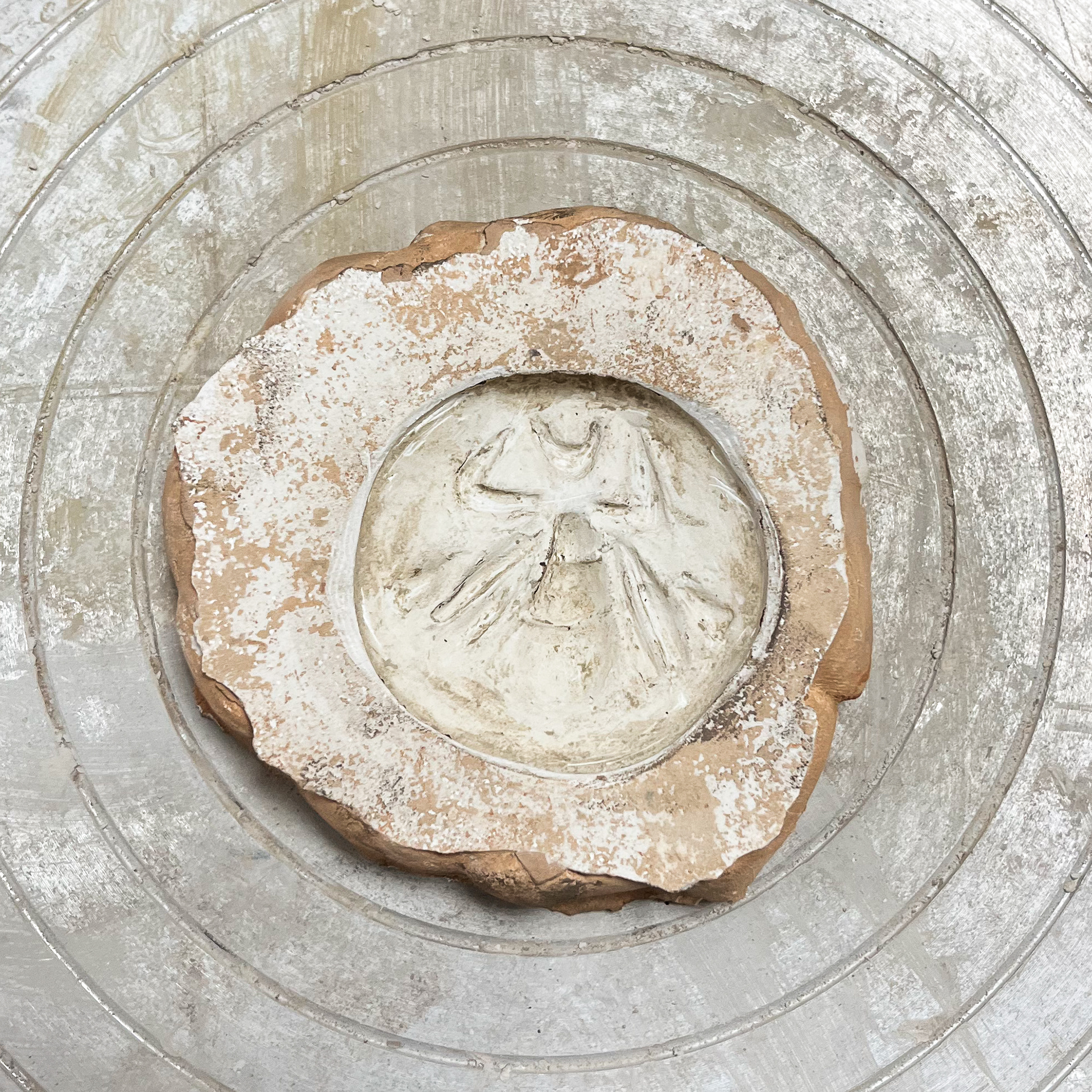 The radius, often referred to as the ray, is a light thread that illuminates the work and provokes questions by creating a path that connects all of the points that surround the circle at its centre. This appendix describes the steps taken to produce the finished artwork as well as the development of my circular concept