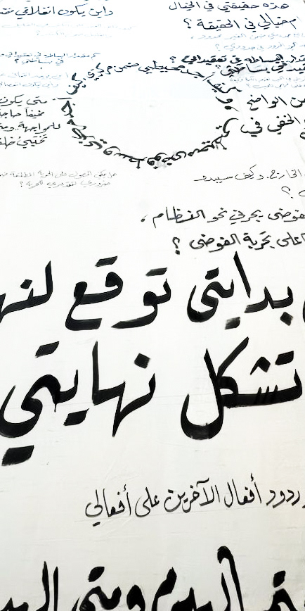 Analyses of twenty-four circular questions reflecting Akka's past, present, and future. The work was visually translated as a video installation art piece, featuring a montage of two videos, the circular questions lettering canvas, and a publication